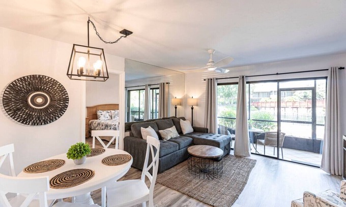 The resort is approximately 30 miles/minutes from Fort Myers International airport (RSW). Free parking is provided on the premises. Biking/ walking to the beach is possible and Ubers/Lyfts or taxis are plentiful in Naples