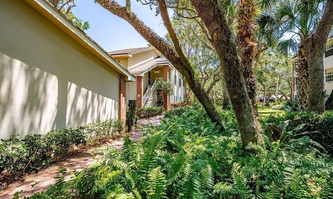 - Spacious condo with views of oak canopy, gardens & pool. 5-minute walk to beach.