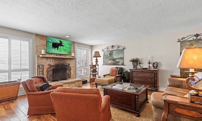 - Inviting Great Room: The cozy great room features a wood-burning fireplace, ideal for creating an intimate atmosphere during your wedding gatherings. A large HDTV also enhances entertainment options.