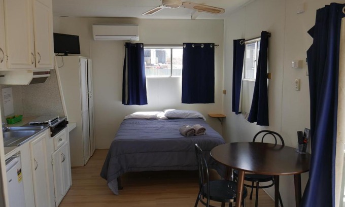 Parkes Country Cabins in Parkes provides accommodations with a garden, barbecue facilities, and a shared lounge. The campground offers rooms with air conditioning, free private parking, and free Wifi. All units comprise a seating area and a fully equipped kitchenette with various cooking facilities, including a microwave, a toaster, and a fridge. The rooms include a saltwater pool. At the campground, the units include bed linen and towels. You can play table tennis at the campground. With an outdoor fireplace and a picnic area, this campground offers plenty of opportunities to wind down. Parkes Airport is 5 miles from the property.