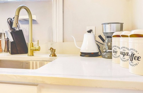 ✓ Full Kitchen Kitchenette With Induction small oven, mini-fridge, microwave, kettle include Coffee and tea