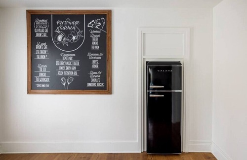 The Parsonage Suite has been recently refreshed and is our only suite featuring two levels. The appliances, linens and most of the furniture are new! This is a wonderful space for spending time with friends or family cooking in the kitchen, or playing many of the provided board games. In the backyard you will find a BBQ for grilling and tables to enjoy a meal outdoors. The outdoor space is shared with other guests at the Inn.