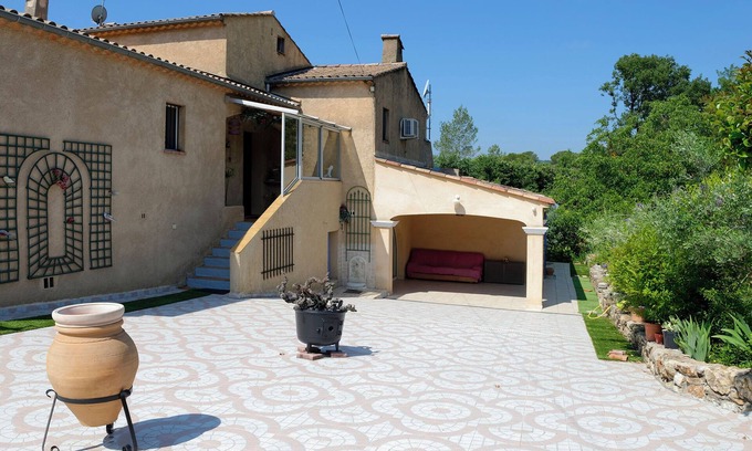 in a landscaped garden of 3000m2 walk next to the house river a5km the apartment is renovated a new there are 2 large covered terraces of 30m2 each 800m from the village and the municipal pool large provencal market restaurant Bruno le Verdon 35km st Raphael 35 km dogs are welcome garden fenced many Provencal villages next to the cottage there is hiking cleaning service and 50th mandatory sheets a small dog 20th a big dog 30th tourist tax 0e15 per day and per person