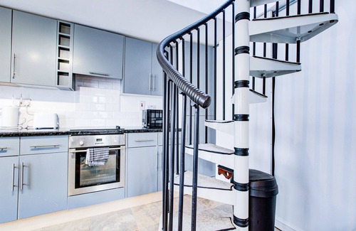 As you enter into the property, you will see a spacious open plan kitchen, dining and living area. beautifully furnished and immaculately clean. on the far side, is the shower room that has been built to an excellent standard. Up the spiral staircase is another toilet, and a very comfortable double bed