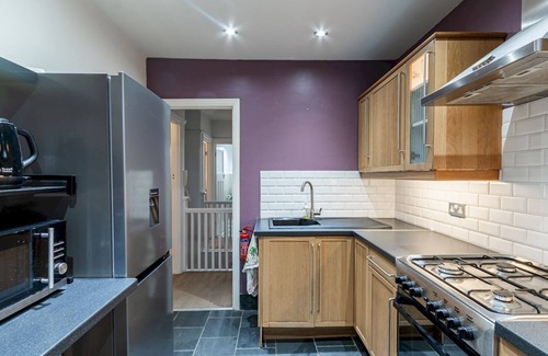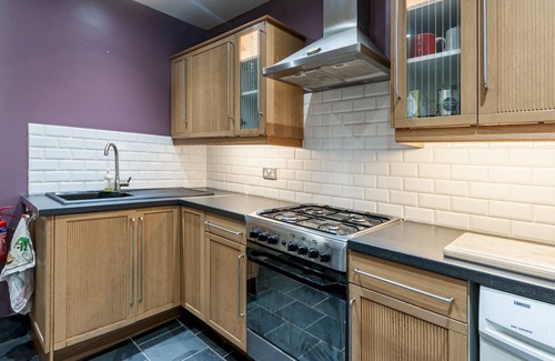 The fully-equipped kitchen is perfect for cooking up a meal, complete with modern appliances and all the utensils you’ll need.
