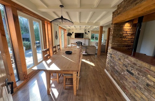 An immaculate oak framed country house in the heart of the Chilterns area of outstanding natural beauty. King sized beds, fully equipped kitchen with Aga cooker, sun filled, light and bright. Indoor and outdoor dining. Quiet and secure in its own valley and yet walking distance to the village and pubs. Long term bookings welcome at discount.