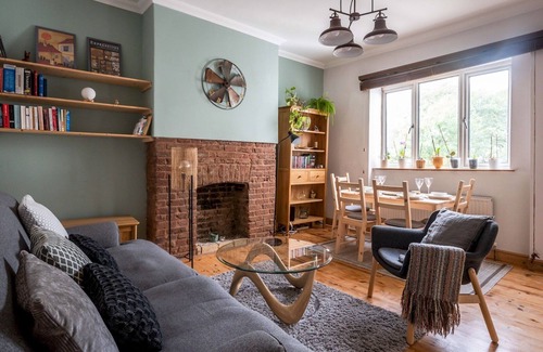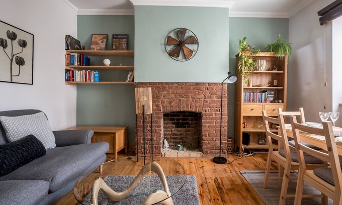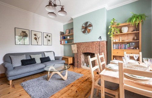 My comfortable Victorian flat has some original features, high ceilings, a decorative (unused) brick fireplace, and wooden floors throughout most of the property. It is homely in feel, with character, and is much loved. There is eclectic artwork and artifacts, potted plants, and magnets from my travels which have been left in place for guest enjoyment.