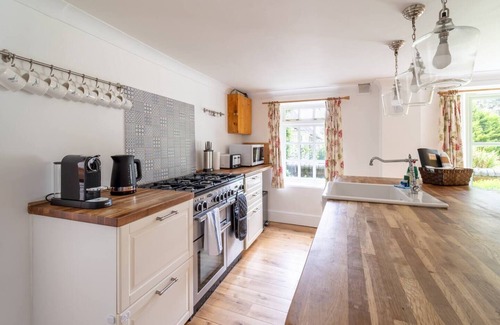 The fully equipped kitchen/diner boasts modern amenities including a Nespresso machine (please bring your own pods), tall fridge freezer and range cooker. The breakfast bar and dining table provides ample seating for enjoying meals together in comfort.