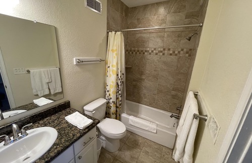The game-room can easily be its own semi private bedroom. It has its own bathroom as well as two futons that are best for children.