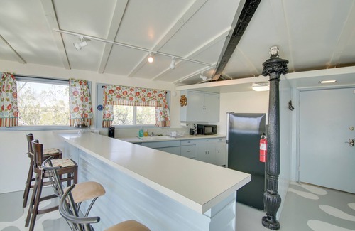 Head to this unique vacation rental home in Desert Hot Springs, California to have an unforgettable time! The property includes 2 bedrooms, 1 bath, and one-of-a-kind touches that make it the perfect escape for friends or couples. Conveniently located, the house is within 5 miles of numerous natural hot springs— known for their many health benefits! When you're not admiring the mountain views or enjoying a hot springs soak, explore Joshua Tree National Park, the Palm Springs Art Museum, and more!