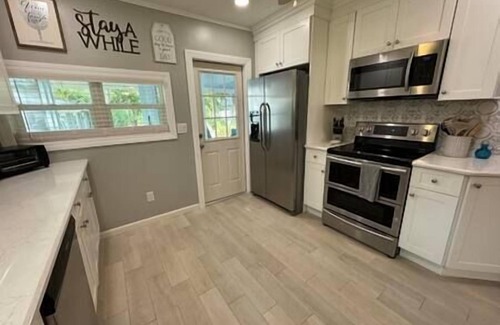 Welcome to Patiokee Place! Located less than a mile from beautiful downtown Stuart, this cozy, yet roomy 2 bedroom, 1 bath house sleeps 6, with 2 queens and a pullout sofa. The enclosed front porch has a dedicated work space and a spacious kitchen makes food prep easy! Laundry is on site. Enjoy the private screened back porch for your morning coffee or an evening cocktail. Come and relax at Patiokee Place!