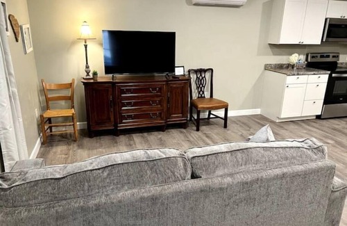 This history themed studio apartment sleeps 5. The apartment includes a queen, pull out queen sofa bed, optional roll out twin bed, a full kitchen, one bathroom, full laundry area, with areas for relaxing, bonfire and a gas grill. The apartment offers cozy historic decor including facts about Spartanburg and Roebuck. It's charming and includes a large room with designated area for the bed and living area, a kitchen and separate bath. We are minutes from downtown Spartanburg.