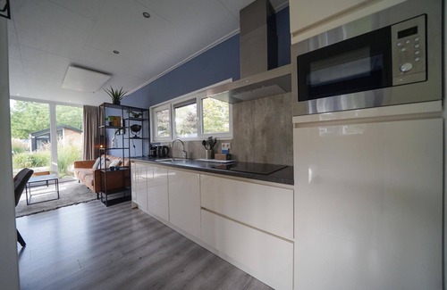 Pavilion 4 is an attractive and contemporary chalet with all the luxuries of home. The detached chalet is suitable for 4 persons and has a ground floor. The cosy living room has a sitting area with television, dining area and kitchen with a dishwasher, induction cooker and Nespresso Professional Machine (capsules can be bought exclusively at the reception). There are 2 bedrooms, both with 2 single beds. There is also a bathroom with shower, toilet and sink. The chalet has a garden with a furnished terrace. You can use free Wi-Fi and park your car in the central car park.