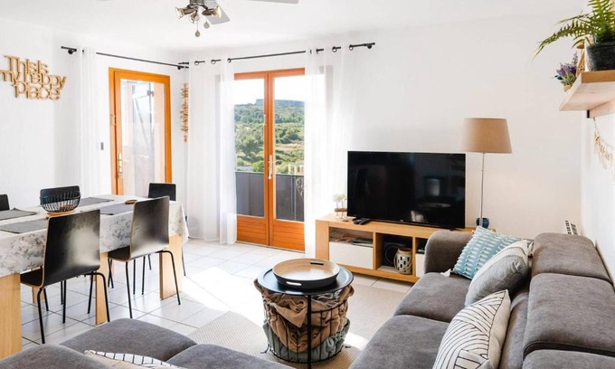 Pavillon T3 rénové avec piscine, parking, vue nature - 4 pers. - Narbonne Plage - FR-1-409-163 is located in Narbonne, just a 15-minute walk from Plage Creneau Naturel and one mile from Plage Terrasses Soleil. Providing free private parking, the 3-star villa is a 11-minute walk from Plage Terrasses Mer. Outdoor seating is also available at the villa. Pavillon T3 rénové avec piscine, parking, vue nature - 4 pers. - Narbonne Plage - FR-1-409-163 features 2 bedrooms, a fully equipped kitchen with a dishwasher and an oven, a washing machine, and 1 bathroom. A TV is featured. For added privacy, the accommodation features a private entrance. Fonserannes Lock is 16 miles from the accommodation, while Saint-Nazaire Cathedral is 18 miles away. Beziers Cap d'Agde Airport is 34 miles from the property.