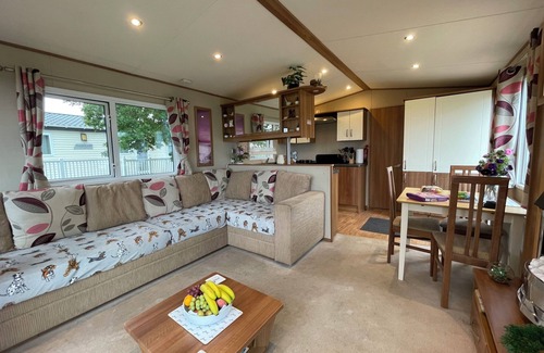 A warm welcome awaits you and your pets at my charming caravan! Idyllically situated on the edge of a nature reserve, with stunning views across the Solent and direct beach access. Relax on the decking and watch the cruise ships and yachts sail by. Families will love the vibrant sports area, featuring football and basketball courts; for the younger members an enclosed playground. There are extra facilities to enjoy during the Park’s open season (mid March-end October). These include swimming pool, restaurant, clubhouse with WiFi, amusements, supermarket, takeaway and launderette. Passes are available from Reception (£21pp for 7 days or £18.90pp 0-6 days). PLEASE NOTE: there is no public transport serving Thorness Bay. This six birth accommodation has three bedrooms; one double with en-suite, tv and hairdryer plus two twin rooms and a family shower room. The fully equipped kitchen, inc. washing up pack and tea towels, comprises of a gas cooker, fridge freezer and microwave: plus ample cupboard space for all your provisions. The lounge has a dining table, Dimplex electric fire, smart tv and DVD player. The caravan benefits from double glazing and full central heating for guests staying during the colder months. I provide a Welcome Pack consisting of various teas and coffees, milk, soft drinks, cakes, biscuits and a bowl of fresh fruit: not forgetting your equally important fur babies, there’s a treats pack for them too! For your convenience, beds are made up on arrival and towels are included. There is a reserved parking space for you. Whether you’re unwinding on site or exploring the local attractions, this holiday home is the ideal retreat for a delightful getaway by the sea!