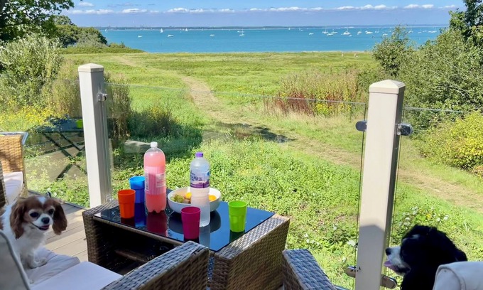 Paws a While! caravan with uninterrupted views of Solent and direct beach access | House in Great Thorness