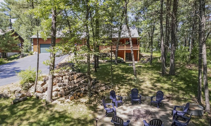 Beautiful and spacious, fully stocked log home nestled in a wooded landscape and overlooking Petenwell Lake. Eight miles from Sand Valley and Arrowhead Golf Courses. Enjoy gorgeous sunsets from the large screened porch, complete with a wood-burning stove or from the outside seating area complete with Adirondack chairs, fire table and a Weber gas grill. Walk the wooded trail behind the house which overlooks the Lake. Make smores at the fire pit or play bags in the front yard. Lake access and boat launch are just a short three minute walk on a scenic trail. Play ping pong, darts or work on your putt on the putting green in the game room, which also features an 86" T.V. with a power reclining sofa. Create memories playing board or card games, working a puzzle or just relax and read a book in the loft. If you want to burn off some stress, use the treadmill, agility ball or yoga mats in the exercise area. Start your day enjoying a cup of coffee or tea from the fully stocked coffee bar. Miles of ATV trails are minutes away or if you don't have your own, give it a try at the nearby ATV rental and park. Book a fishing charter or rent a pontoon boat. Mini golf is 15 minutes away or take a day trip to the water park capitol of the world- The Wisconsin Dells or Woodside Sports Complex, both only a 45 minute drive.