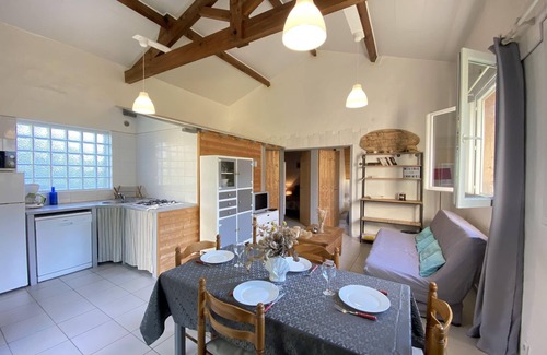 It is in Arès, a beautiful town in the basin of Arcachon between Andernos baths and the peninsula of Cap Ferret, we welcome you all year in a beautiful holiday home of 50m2.