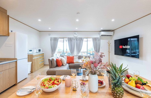 As you settle into this 2-bedroom, 1-bathroom rental, you'll find a dining area and air conditioning. In addition, there's a spring water bathtub, along with free toiletries, a bidet, and towels. The kitchen is equipped with a stovetop, as well as an electric kettle, a microwave, and cookware. And there's a washing machine, so you can even pack a bit lighter.