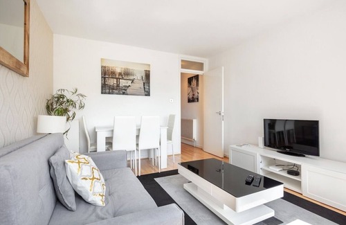 Modern 2 bed, 2 bath apartment just a 12-minute walk from the Thames Beach Club, Neverland. 5 minutes walk from Wandsworth Town station & 10 minutes to Clapham Junction. With vibrant decor, comfortable beds, and ample natural light, you will love it. The lounge features a cozy sofa, flat-screen TV, and dining area. Fully equipped kitchen with appliances. Ideal for couples, families, or business travelers seeking comfort in a prime location. Fast Wi-Fi with workspace, in a quiet, serene location.