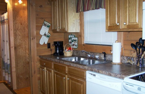 • Kitchen fully equipped with refrigerator w/ ice maker, microwave, flat top range, dishwasher, coffee maker, toaster, crock pot, electric mixer, and chopper. Cookware, dinnerware, silverware, cooking utensils, kitchen linens, and 1st morning coffee provided. Dining table with 4 chairs plus a breakfast bar with 2 bar stools for additional dining space.