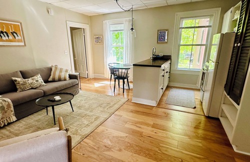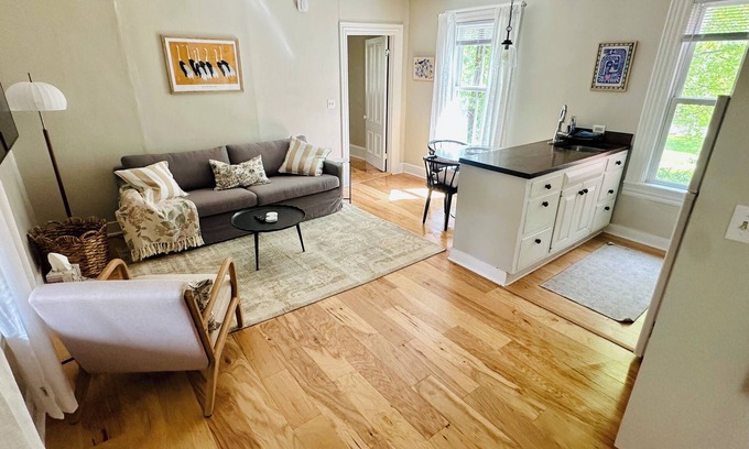 Welcome to your homey Vermont escape—a newly furnished, one-bedroom apartment nestled on the ground floor of a beautifully preserved historic home in Shelburne. With a private entrance, full kitchen, bright living area, smart TV, and a bathroom, this space is designed for comfort, charm, and convenience.