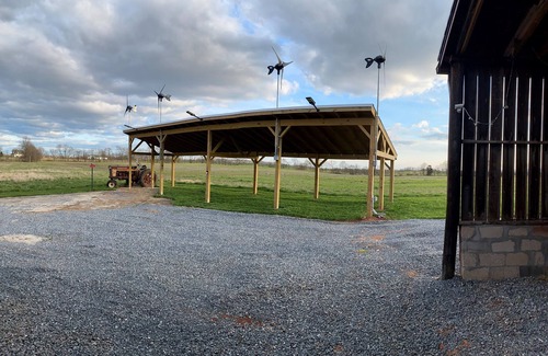 The loafing shed with Eeny, Meenie, or Minie open stalls works if you have an EV and want an electrical fill-up, known as a charge, and to take a nap, or stay connected and in your car overnight.
