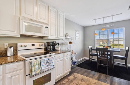 The condo features a quiet water view of the pond, visible from the primary bedroom, living room, kitchen, and porch. You'll observe various wildlife anywhere in the condo morning, noon, and night. The unit is completely up-to-date, including full cable and streaming smart TVs in the living room and both bedrooms. The coffee pot is both K-cup and drip.