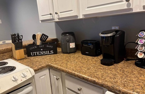 Kick back and relax in this calm, stylish space. Surround yourself with style and comfort in this contemporary space Wi-Fi and free parking included. This unit is on the third floor of the building. We offer every amenity you would need for a very comfortable stay, whether it’s for a couple nights or a long-term. Conveniently located right off I 75. We are a 10 minute walk to Jd Legends, and Walmart sits directly behind the building. Plenty of restaurants, and entertainment venues within 1 mile