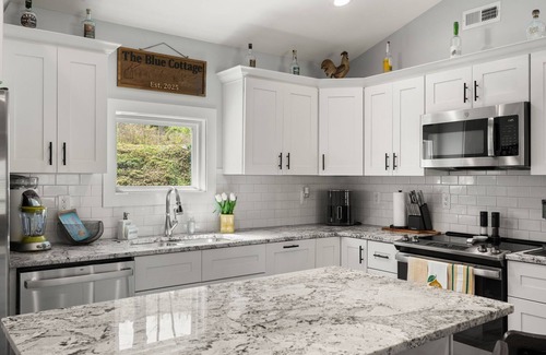 Located in Floyds Knobs, enjoy what this 2-bedroom cottage has to offer. With a fabulous fitness room, hot tub, AC, and heating, guests can relax in the soothing ambiance of the king and queen beds. You're sure to make fantastic memories with a stay at our place.