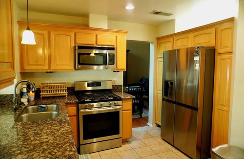 Bring the whole family to this relaxing spot, complete with ample space for fun and relaxation. It sits in a quiet cul-de-sac neighborhood in Highland, great peaceful morning or sunset walks with the family. A very central location, minutes from the historical downtown Redlands and from Yaamava Casino. Also, not too far from Big Bear Mountains, the beautiful SoCal beaches, and Disneyland. Plenty of memories to make while visiting this beautiful Southern California home. Pets are welcome, max 3.