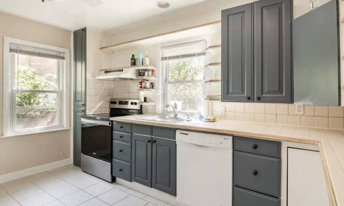 - Cozy efficiency ONE large room ONE QUEEN bed apartment with kitchenette no oven.