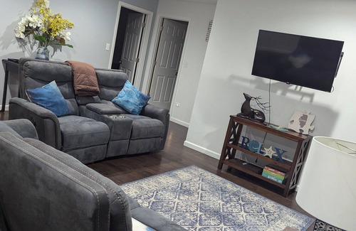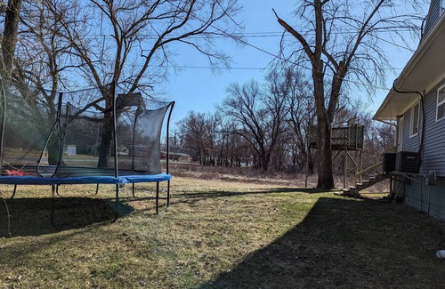 Bring the whole family or a few friends to enjoy this wonderful house in East Moline with 4 queen beds, 1 twin bed, and 3 bathrooms with a jetted bathtub. The family room even has an extra child bed for added comfort. Guests can enjoy amenities like an iron, AC, WiFi, heating, and have access to a washer and dryer during their stay their stay.