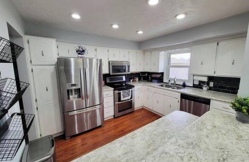 Welcome to your home away from home! Whether you're in town for a family vacation, a special event, or just passing through, our spacious and thoughtfully designed 5 bed (3BR)/3BA home offers the perfect blend of comfort, convenience, and privacy for your stay. Located in a quiet, safe neighborhood just 8 minutes from the interstate, this home is a peaceful retreat that still keeps you close to everything you need - dining, shopping, hospitals, parks, and more.