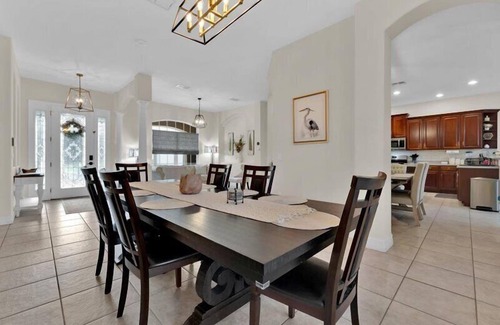 Located just a short drive from Walt Disney World, Universal Studios, and other top Orlando attractions, this home puts you in the heart of the action while offering a peaceful escape from the crowds. After a fun-filled day at the parks, retreat to your own private oasis for relaxation and family time.