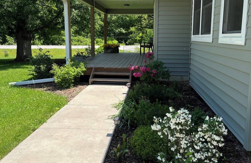 Come & relax on the front porch or back deck. Enjoy 1.2 acres of large shade trees, perennial flowers and flat yard. Build a fire in the back yard, play outdoor games, relax inside with a book or puzzle from the closet or play one of the board games provided. Bring your boat and launch at public ramp 1 mile away. There is parking at house for pickups with boat trailers on the long gravel drive. The secure garage is available to store your bikes, kayaks or motorcycles in. Walk path across road to lakeshore.