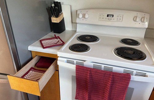 KITCHEN: Stove/oven, refrigerator/freezer, microwave, drip coffee maker, rice cooker, slow cooker, baking dishes, silverware, knife set, bowls, dishes, glasses, wine glasses, and 50 other cooking items as well as a pellet grill.