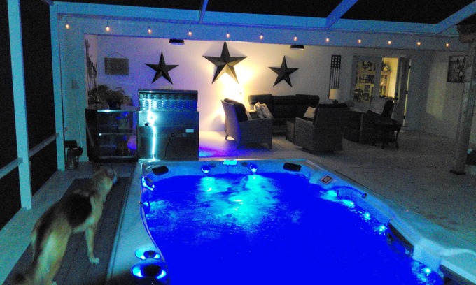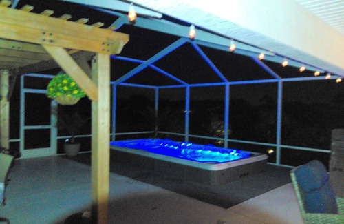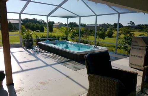 Country Living, Unwind in at this delightful house. Hear the Horses, Cows and Donkeys. With 3 cozy bedrooms including a king bed, queen bed, and futon in the 3 rd bedroom that is a office in case you need to work. The home is an open plan, common space in the middle, Living, Dining and Kitchen, The main bedroom and bath is on one side of the home and Bedroom 2 and Bedroom Office is on the other and can be closed off from the common area. guests will feel right at home. The 2 bathrooms feature a relaxing bathtub, shower and a convenient hair dryer. Enjoy the AC, heating, iron, and other amenities provided. The large covered and screened lanai has an outdoor kitchen, large swim spa, fireplace and a large outdoor shower with hot and cold water. The home is 2 miles from all the shopping and resturants, Golf cart accesable to the villages, Street Legal Golf Cart avalible for rent. Relax in the country