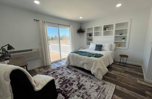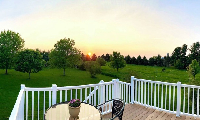 This second-floor suite sits on 5.5 acres in the country, and is surrounded by family-owned farms. You will be greeted by the sunrise in the kitchen and blessed with a sunset view from the balcony patio.
