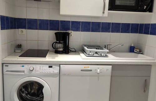 Appartement dans résidence au calme avec piscine collective (ouverte entre mi-juin et mi-septembre) se composant d'un séjour avec clic clac pour deux couchages (140), télévision, cuisine équipée avec deux feux induction, réfrigérateur/congélateur, lave linge, lave vaisselle, mini four, micro ondes, une chambre pour deux couchages (lit 140) avec placard/penderie, une salle d'eau avec douche, sèche serviette, wc.