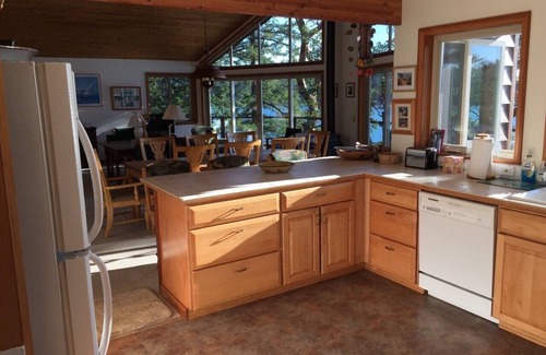 Five minute drive to Roche Harbor or 25-30 min walk. Relax and breathe in fresh sea air while dining on the spacious sun-soaked deck, overlooking sparkling water through large bay-view windows, or lounging on the pebble beach listening to gentle waves and watching gulls, eagles, and otters cruise by. Very private and nestled among madrona and fir trees, this vacation home is fantastic during any season of the year and perfect for a family vacation, gathering of friends, or romantic getaway. A five minute drive (25 minute walk) from Roche Harbor, you'll get privacy and peaceful accomodations but will still be close by to lots of fun on-island activities. It's a truly special place you won't want to miss -- our family has enjoyed this unique property for many years!