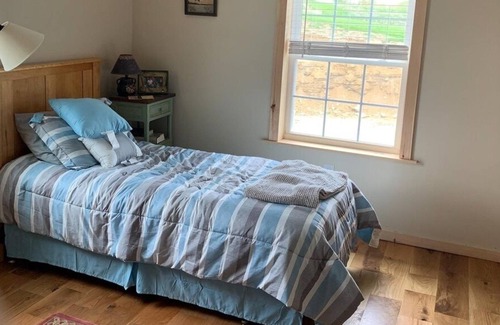 Full kitchen, granite countertops, walk-in shower, flat screen tv, electric fireplace, & Keurig! 1 Queen bed and 2 Twin beds. Free parking and wifi. It is located above a shared garage.
