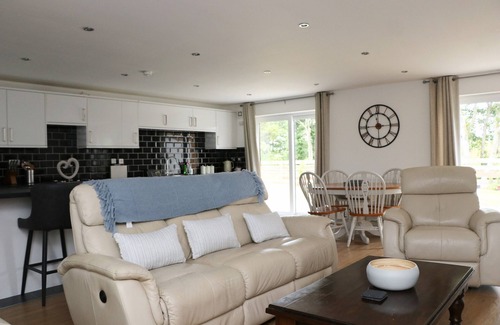 Once inside, Otters Holt offers an open plan living/dining room and kitchen, all leading out through two large sets of doors to the decking area, perfect for outdoor dining. The family-friendly interior features plenty of cosy seating, as well as a large island unit with breakfast bar, perfect for grabbing a bite before heading out to the surf. Follow the hallway to a large second bedroom with plenty of room for both a king bed and bunk beds, the ideal spot for the kids! Also off this hallway is the primary suite, a large king-sized room with ensuite bathroom and sliding doors to the garden as well as a generous family bathroom.