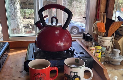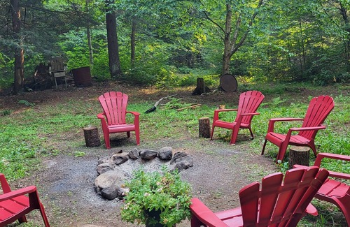 You will arrive down an enchanting trail at this vintage, off-grid log cabin in a magical old-growth forest. Starry nights at the bonfire are accompanied by the sound of bird song, owls and animals scurrying in the woodland. There is no light pollution here. Bear, deer and moose wander the tens of thousands of acres that surround the Cabin. Hike into the woods, gather and chop wood for the fire or enjoy your coffee and tea in the fragrant morning air. The Cabin is suited for small groups of up to 6 people but it is even more cozy and romantic for couples looking for privacy and a minimalist get away. Enjoy the kitchen, with pots, pans, dishes and all the amenities you need. You can light the cozy wood stove and snuggle up by the fire. There is a queen bed on the main floor, 1 queen and 2 singles in the 16ft (4.8m) x 21ft (6.4m) loft. The beds are very comfortable indeed! You will have fresh linens and soft towels provided. A pretty lake is just a 10 minute walk down the lane which is excellent for swimming, fishing and boating. Guests can use the cabin and its supplies as if they are family. Water is brought in by vehicle and will be supplied fresh for every visit. Your vehicles are parked safely on private property off the main road. There is one outhouse and it is kept very clean. An off-grid shower is provided and it is amazing! There is no electricity but there is a sporadic cellular signal if needed. The cabin is sparkly clean but don't be surprised if the odd red squirrel or mouse pays you a visit. This is a truly authentic Canadian cabin experience and humans are the visitors to this forest. Check in is between 3pm to 9pm. Guests can be met at the trail head which is a short distance from the town, or they can follow the simple instructions given before check in. 4x4 or All-wheel drive vehicles are better on the trail but going slowly, almost any vehicle can get in. Plenty of free parking is available for up to 4 cars. From the location which is disclosed upon booking, you will follow the route to the cabin where you can drive up to the front door in spring, summer and fall to park. It may be necessary to show you the ropes initially. After that the place is very comfortable. It is unlikely you will see any other people on your visit but in town there is excellent food at several good restaurants and the local micro-brewery just 10 minutes away, if you so choose. There is also a general store, a liquor store (LCBO) and the gas station. There is a public dock by the local dam which is excellent for swimming and fishing and provides amazing views of the lake. There are often local events in the summer and great snowmobiling trails in the winter. I generally get my supplies and head into the woods for days on end. There is no hunting or use of firearms at the Cabin or on the lands around the Cabin. Check out is 11 am. Guests can roam freely on 10,000 acres of prime crown land or stick to the trails on the 100 acres where the cabin sits. There are numerous lakes in the area, two are within easy walking distance. One in particular is uninhabited by people and frequented by moose, deer, bear, turkey, racoon and chipmunk. There is also the historical pioneer road just around the trail corner where you can still see the original corduroy road used by Canadian pioneers over a hundred years ago! Expect to see wildlife. As well as birds and owls, foxes, moose, deer, porcupines, bears, wolves (if you are lucky enough to hear them), chipmunks and squirrels, there are mosquitos in the forest. It is just a part of the natural order of things. Protect yourself from insects by using bug spray or covering up, it is that simple. Long sleeves and pants help as does light colored clothing. Some bug spray and bug jackets are provided. There is a charcoal BBQ, an outdoor wood stove and fire pit for cooking stews and keeping warm and comfortable seating scattered about camp. For hiking in the woods and on the trails, best to bring sturdy outdoor clothes and shoes (or boots) to get the most out of your visit. For safety and security reasons we have a trail cam that monitors traffic to and from the Cabin. This will be pointed out to you for your visit and it will not infringe on your privacy.
