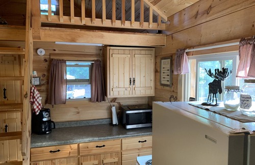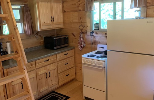 Complete with a compost toilet, electric & Water enjoy a Shower powered by an Electric Water Heater. Our cabin has an outdoor sink, as seen in pictures.