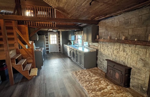 Enjoy this Great peaceful cabin getaway with a large yard for those outdoor activities, or sit out on the covered porch that overlooks the Ohio River as the boats and barges pass by. With this amazing view there is lots to see as you unwind and decompress from those difficult days. Inside this 1,632 sq.ft cabin you will find a fully equipped kitchen to fit all your cooking needs. One queen bed upstairs in the loft including a full bath. Along with another comfortable queen downstairs with a near by full bath. A large sectional with a sofa bed with extra pillows and blankets. A tv and dvd player with a few dvd’s and board games to enjoy on rainy days. Back outside on the open deck area you will find a bbq grill set up for propane or charcoal. Outdoor furniture with propane fire pit and a 5 person hot tub.