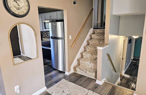 Six steps upstairs are the 3 bedrooms and a bathroom. Plus 1 queen size superior inflatable mattress in the closet of the master bedroom.