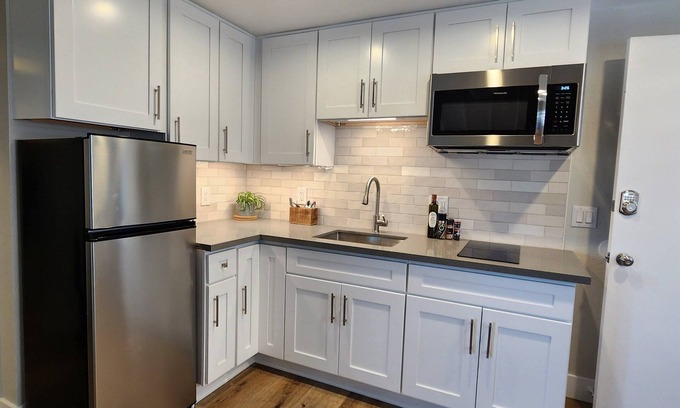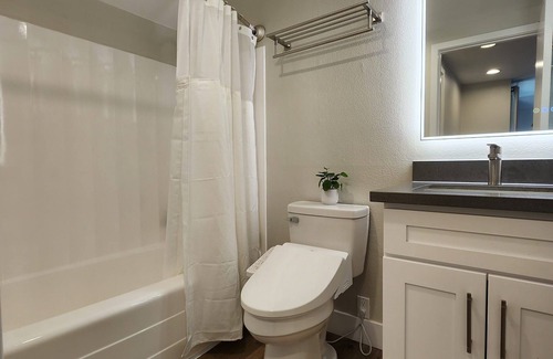 The condo is clean, quiet, and fully remodeled. Featuring a spacious kitchen with granite countertops, recessed lighting and antique white cabinetry. The modern bathroom with bidet and LED wall mirror. The space can sleep up to 4 adults, with the bedroom offers a luxurious California King-size memory foam bed and a living room with a Queen-size sofa bed. Access to the spacious 1-car garage. Netflix entertainment on the 4K 58 inch TV. This beautiful home is perfect for a quiet vacation with easy access to Disneyland via the 241 toll road and highway to Laguna beach.
