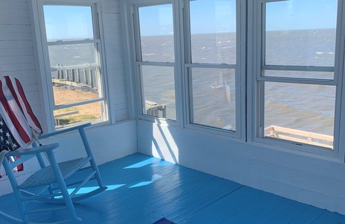 The cottage is 100 years old made of wood. It is a great place to unwind with the bay at your front door.