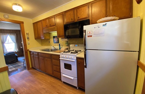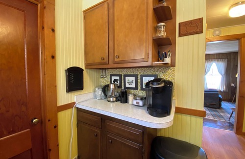 The kitchen is set up for cooking including a variety of pots, pans, utensils and dishes. We provide supplies for making coffee including K-cups and Vermont Coffee Company coffee beans. We provide towels for the bath and kitchen, hand soap, shampoo, conditioner, dish soap, paper towels and cleaning supplies. The beds are made up for your stay. Heat is provided by a hot air wall unit. Cooling is provided by air conditioners in the two bedrooms. The internet is provided by high-speed fiber, and the WiFi extends to all the rooms in the cottage and outside.